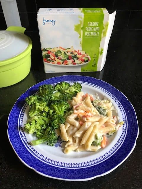 With simple microwave instructions, reheating takes less than 5 minutes. I simply re-heated, re-plated, added my veggies, and took the time to enjoy my meals. And, taking it out of the package to re-plate made it look bigger and more appealing.